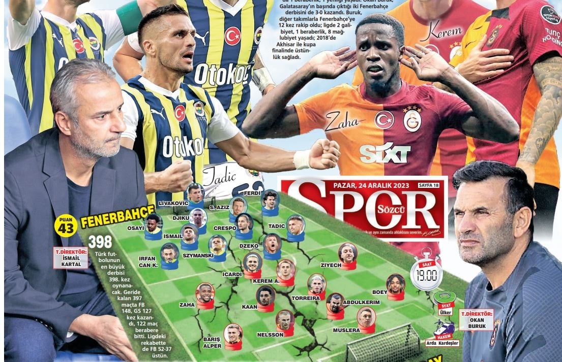 Trendyol Süper Lig’in 18. haftası bugün dev bir maça sahne olacak. 2023’ün son lig derbisinde Fenerbahçe ile Galatasaray karşı karşıya gelecek. Ligde geride kalan 16 maçta iki takım da 14’er galibiyet, birer beraberlik ve mağlubiyetle aynı puanda...
