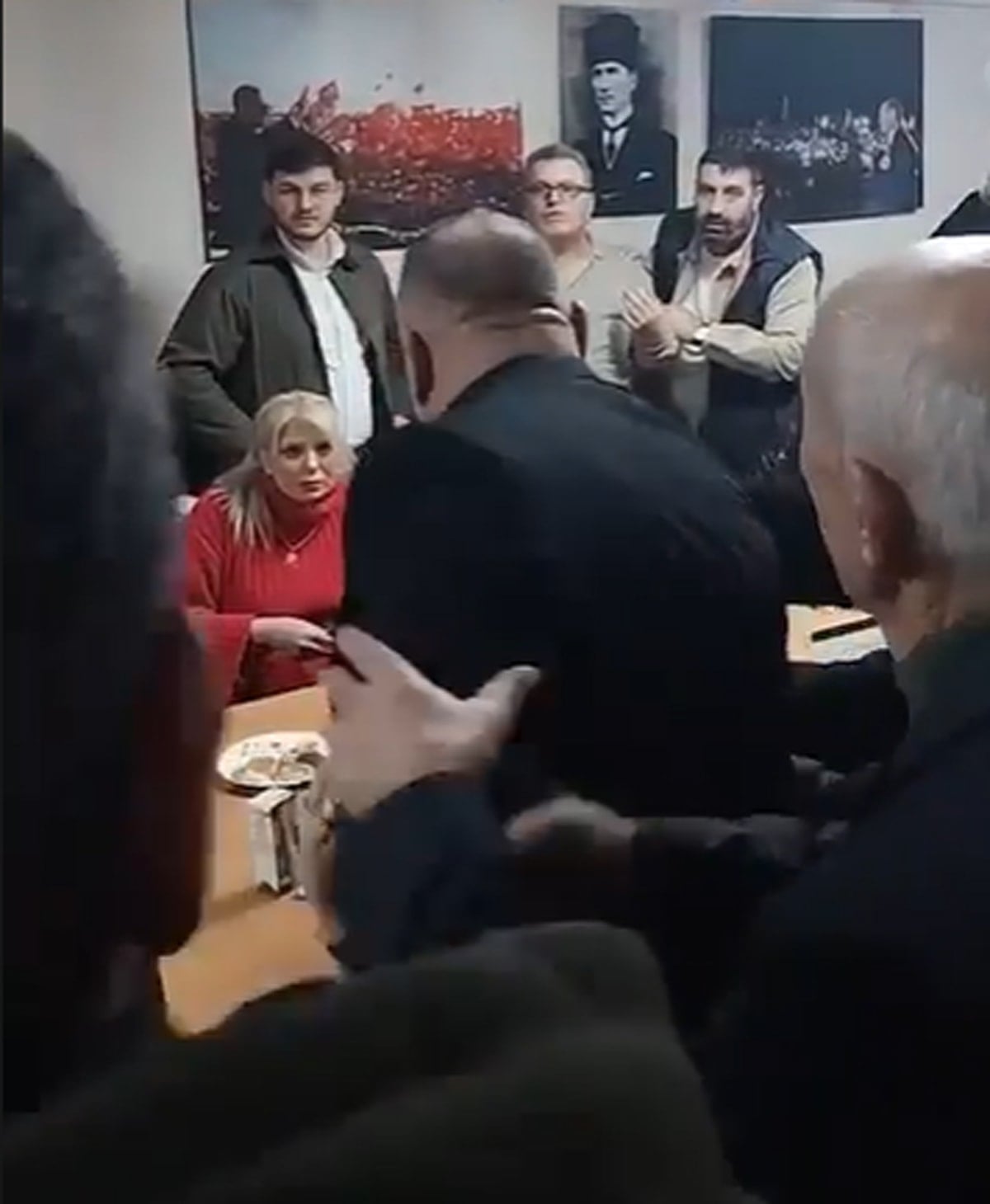 Tartışma anını cep telefonuyla çeken bir kadına da Özdemir tehditte bulundu ve, 'Şu yaşananlardan herhangi biri basına yansısın seni yakarım' diye tehdit etti. Özdemir, ardından da masadan aldığı mikrofonlu kadına fırlatmaya çalıştı.