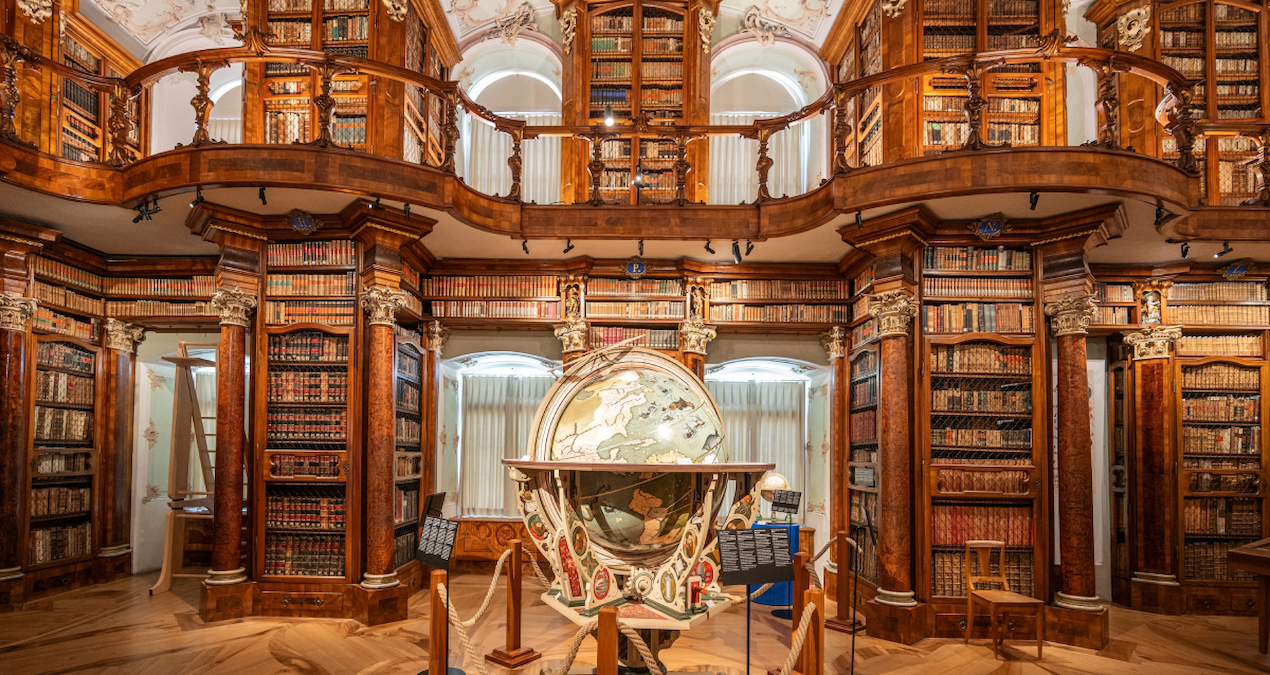 Bu kütüphane dünyanın en iyi korunmuş Barok yapılarından biri. Paha biçilemez bir yazılı mirasa ev sahipliği yapıyor. İki dev yeraltı deposunda saklanan 160 bin el yazması arasında, Orta Çağ'dan kalma 2 bin 100 kodeks bulunuyor. Bu eserlerin 400 tanesi, henüz bininci yıla bile girilmeden kaleme alınmış durumda.