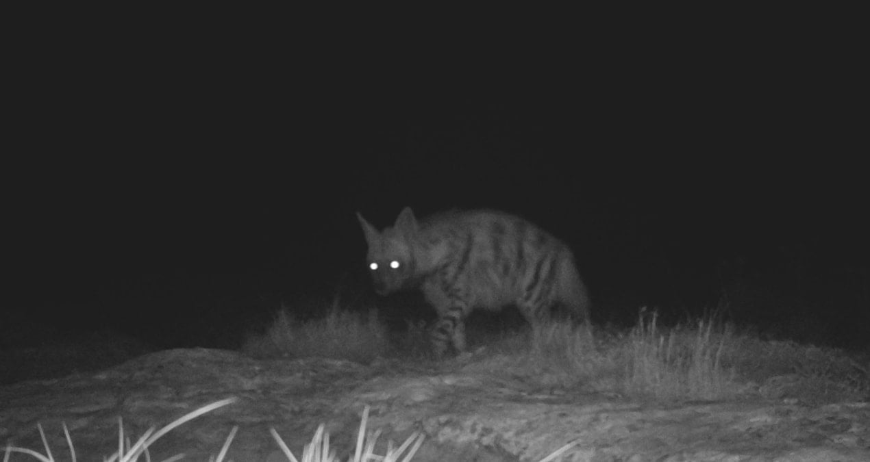 Fotokapanla kaydedilen görüntülerde dağ ceylanlarının sürü halinde otlanması, çizgili sırtlanın ise yiyecek arayışı görüldü.