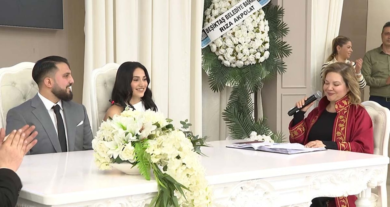 Çiftin az sayıda davetlinin katıldığı nikahını, evlendirme dairesinin birim sorumlusu Serpil Özden kıydı.