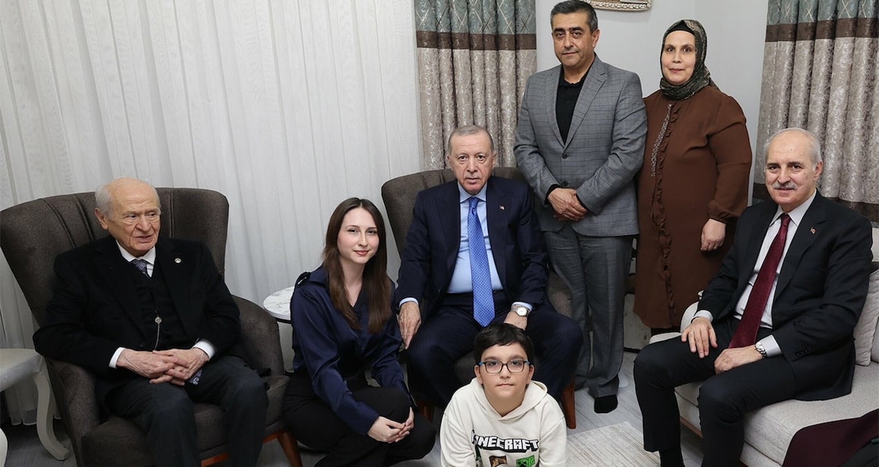 Cumhurbaşkanı Recep Tayyip Erdoğan, Türkiye Büyük Millet Meclisi Başkanı Numan Kurtulmuş ve MHP Genel Başkanı Devlet Bahçeli ile birlikte Osmaniye’de, depremzede Hidayet Solak ve ailesini ziyaret etti.