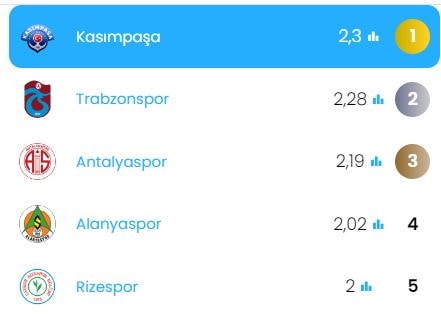 HAFTANIN GOL BEKLENTİSİ (XG) EN YÜKSEK TAKIMI KASIMPAŞA