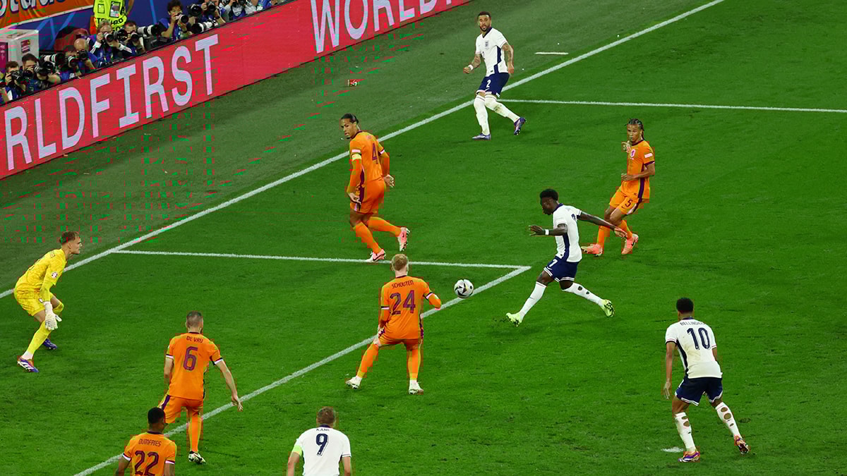 Hollanda Xavi Simons'un füzesiyle öne geçtiği maçta üstünlüğünü uzun süre koruyamadı. İngiltere Harry Kane'in penaltı golüyle skoru 1-1'e getirdi. İkinci yarı uzun süre durgun geçen maçın son anlarında Harry Kane'in yerine oyuna giren Ollie Watkins, 90+1'de İngiltere'yi finale taşıyan golü attı ve ülkesini 2-1'lik galibiyete taşıdı.