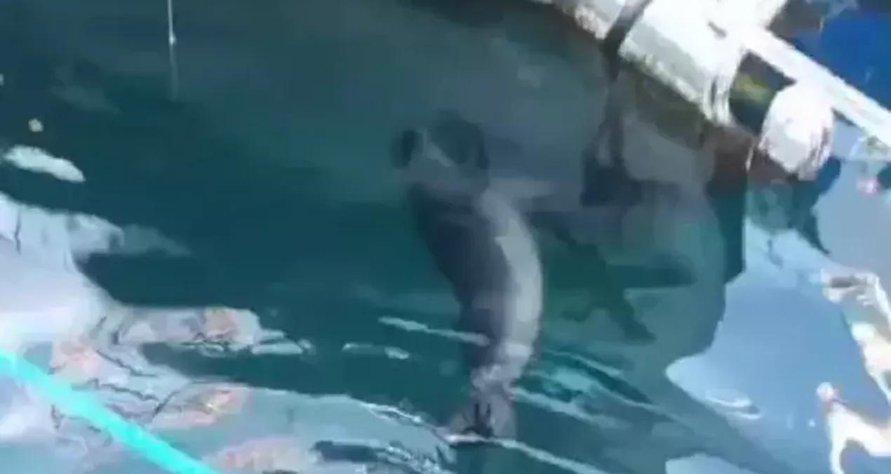 Muğla'nın Bodrum ilçesinde limanda avlanan bir fok, vatandaşların ilgisini çekti.