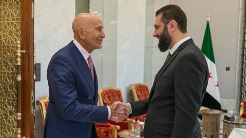 Suriye Geçici Cumhurbaşkanı HTŞ lideri Ahmed el-Şara, başkent Şam’daki Halk Sarayı’nda ABD’nin Suriye Özel Temsilcisi Tom Barrack başkanlığındaki üst düzey heyetle bir araya geldi