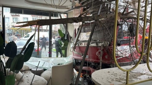 Büyükçekmece'de sürücüsünün kontrolünü yitirdiği kamyon, seyir halindeki otomobile çarptıktan sonra bir iş yerine daldı.