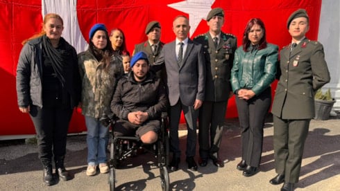 Milli Savunma Bakanlığının (MSB) girişimleriyle Hatay'da, afetzede genç kız kendisine 6 Şubat 2023'teki depremlerde parkasını veren albay ile bir araya geldi.
