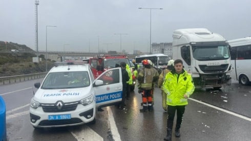 Başakşehir Kuzey Marmara Otoyolu'nda TIR, otomobile arkadan çarptı. Kaza nedeniyle 2 şerit de trafiğe kapatıldı.