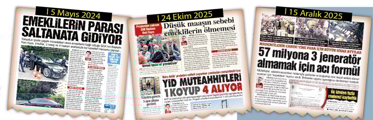 Emeklilerin düşük maaş almalarını uzun yaşamalarına bağlayan Sosyal Güvenlik Kurumu (SGK) Başkanı Raci Kaya ile Zonguldak madenlerindeki ölüm tehlikesini rapor eden müfettişleri durduran Teftiş Kurulu Başkanı Bekir Aktürk görevden alındı. SGK Başkanı Kaya İstanbul’da oturup Ankara ile İstanbul arasında çifte makam aracı kullanıyordu. Kamuoyu Kaya’nın araç saltanatını da emeklilerle ilgili skandal sözlerini de SÖZCÜ’den öğrenmişti.