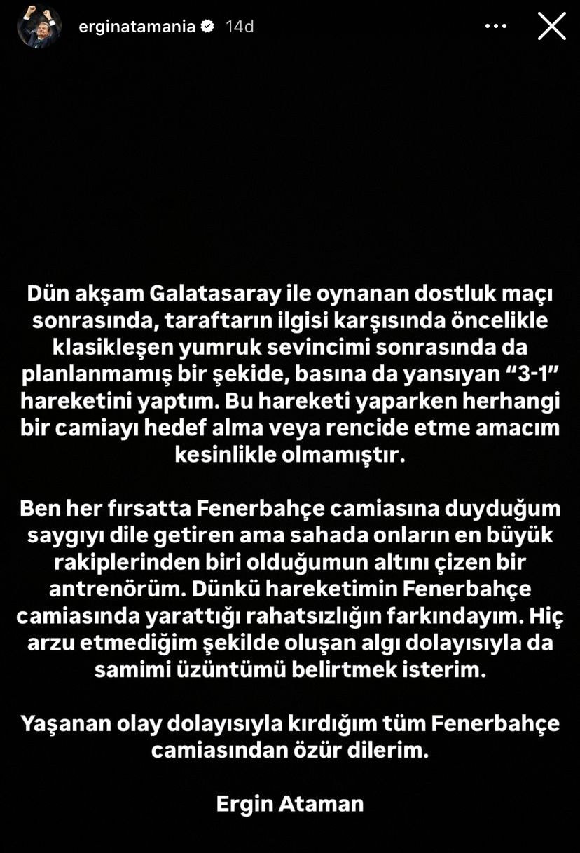 Ergin Ataman tepkiler sonrası sosyal medya hesabından bir açıklama yayınladı: