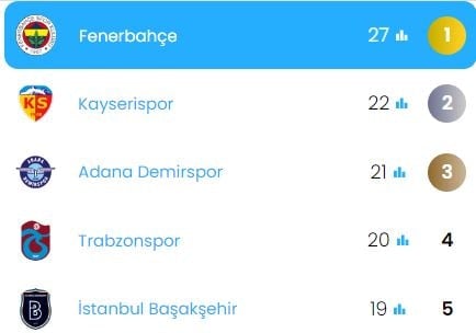 Ayrıca ligin bu hafta en fazla hava topu mücadelesi kazanan takımı da Fenerbahçe oldu. Sarı lacivertliler Galatasaray karşısında girdiği 49 hava topu mücadelesinin 27'sini kazarak bu alanda haftayı lider tamamladı.