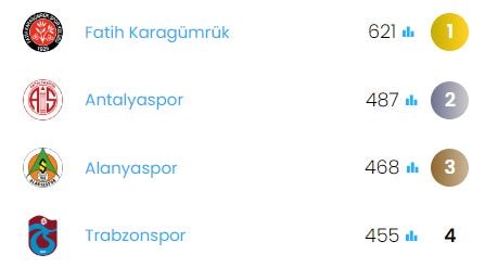 Gaziantep'e sahasında 3-0 kaybeden Karagümrük'ün toplam pas ve başarılı pas sayısı inanılmaz. Maçı 621 pasla tamamlayan Karagümrük bu alanda sezon ortalamasının çok fazla üzerine çıktı. %62 topa sahip olma oranı ve 530 başarılı pasa rağmen kaybeden Karagümrük topla fazla oynamanın her zaman iyi sonuç vermeyeceğini gösteren bir performansa imza attı.