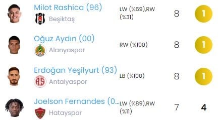 Haftayı Hatayspor deplasmanında galibiyetle tamamlayan Beşiktaş'ta performansıyla göz dolduran isimlerden biri Milot Rashica oldu. Maça ilk 11'de başlayan ve 72 dakika sahada kalan Rashica rakip 3. bölgedeki dribblingleriyle dikkat çekti. 8 kez 3. bölge koşusu atan Kosovalı oyuncu bu alanda Alanyasporlu Oğuz Aydın ve Antalyaspor'dan Erdoğan Yeşilyurt ile haftanın zirvesini paylaştı.