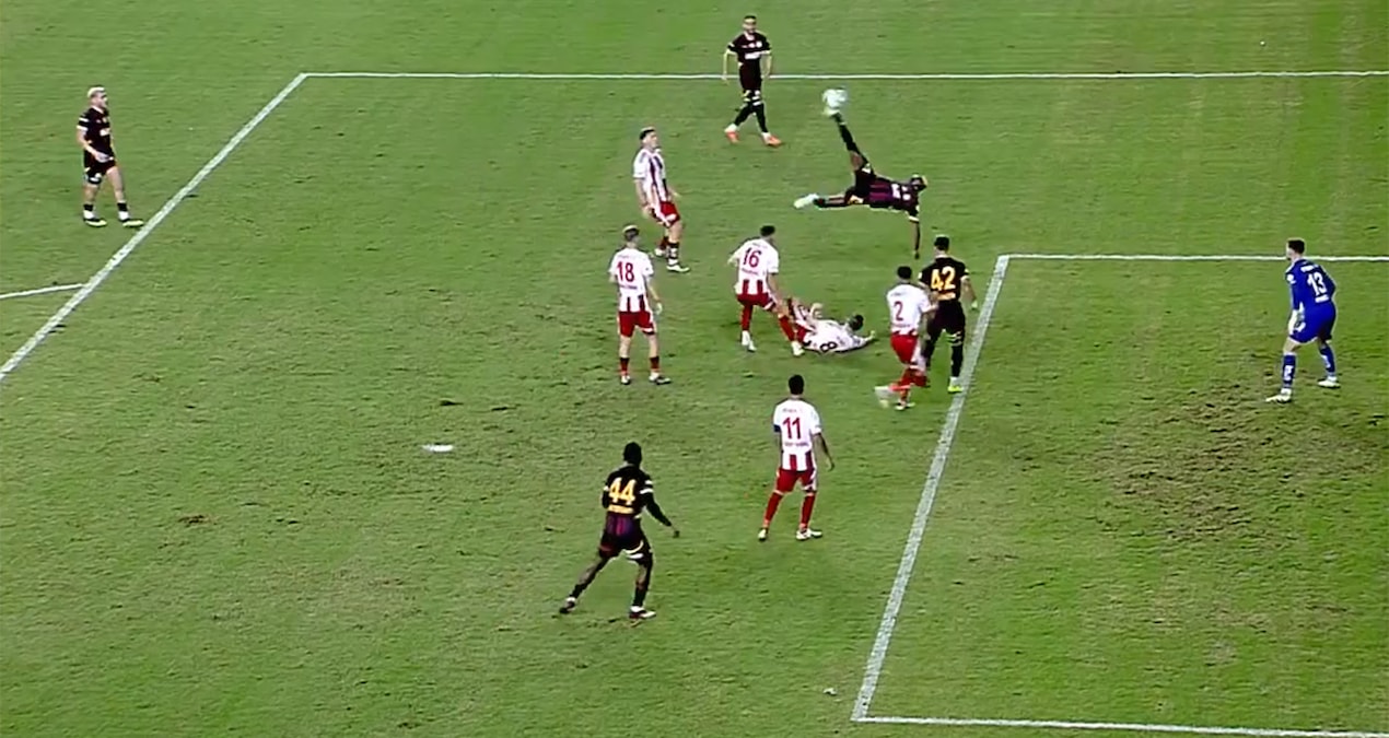 Ve o an geldi... Maçın son dakikalarında Victor Osimhen, sanki fizik kurallarına meydan okurcasına kendini havaya bıraktı.