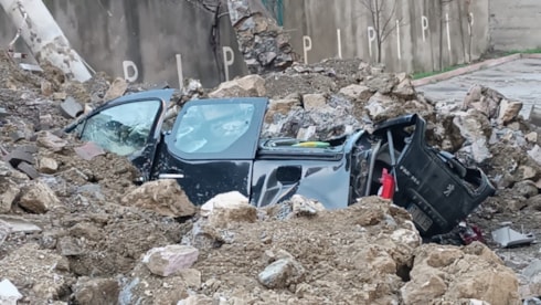 Kastamonu'da istinat duvarı çöktü: 7 otomobil hurdaya döndü