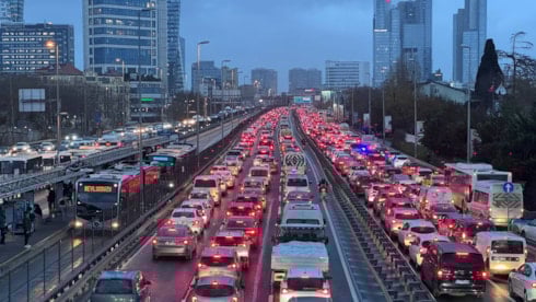 Megakentte haftanın dördüncü iş günü akşam saatlerinde trafik yoğunluğu yüzde 90'ı buldu.
